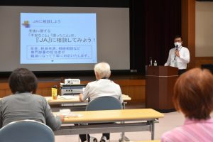 同社葬祭事業部の志賀正康部長は「地域へ出向き、気軽に参加できるセミナーとして講義することができた。これからも多くの人に、終活の重要性を知ってもらい、楽しい老後の生活を過ごしていただきたい」と話していました。次回は、11月にJA管内の松平地区で同様の講義を予定しています。同センターは今後も、地域コミュニティの講座などを活用して終活セミナーを開いていきます。