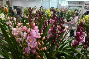 この日は3戸の農家が栽培した約300点の洋ランが並べられました。生産者も会場を訪れ、豊富な知識を生かして商品説明や育て方のアドバイスをしました。コロナ禍でおうち時間が増えたことから消費者の花への関心は高く、自宅で楽しめるお手頃価格のものから、大きなものまで幅広く人気を集めていました。来場者はさまざまな品種がある中、香りや立ち姿、品種名などから、自分好みの花を選んでいました。購入者は「毎年この日を楽しみにしています。昨年はコロナの影響で開催がなく残念だったが、今年はお気に入りの洋ランを見つけることができてとてもうれしい」と話していました。