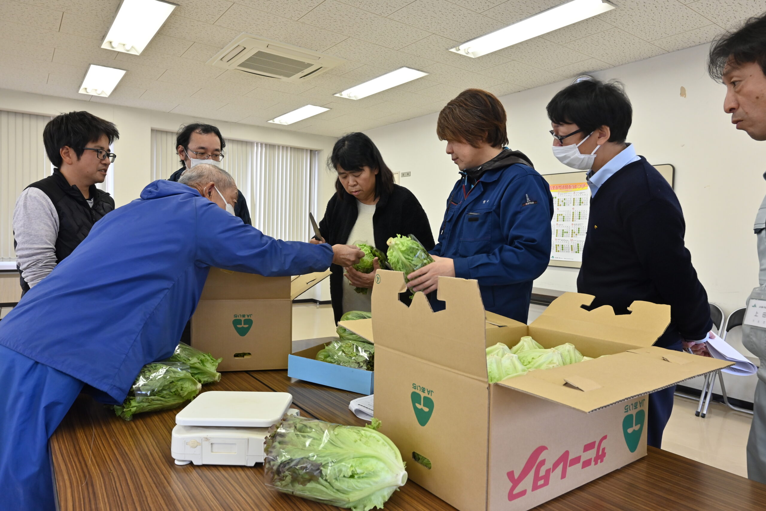JAあいち豊田サニーレタス部会は11月13日、豊田市本新町にあるJA豊田営農センターでサニーレタスの出荷目ぞろえ会を開きました。今年は、生長に多少ばらつきはあるものの病害虫の被害も少なく順調に生育しています。荷受けは同日から始めました。
