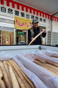 出荷初日のこの日は、7人の組合員が合わせて約400キログラムのジネンジョをJA旭営農センターに出荷しました。持ち込んだジネンジョは、JA職員がサイズや外観を確認しながら計量し、箱詰めしていきます。旭自然薯組合の山下洋明組合長は「夏に雨が降らず潅水をする組合員もいたが、例年どおりのジネンジョが出来た。多くの人に味わってもらいたい」と話しました。出荷は11月中旬から下旬にかけてピークを迎え、12月上旬まで続く予定です。