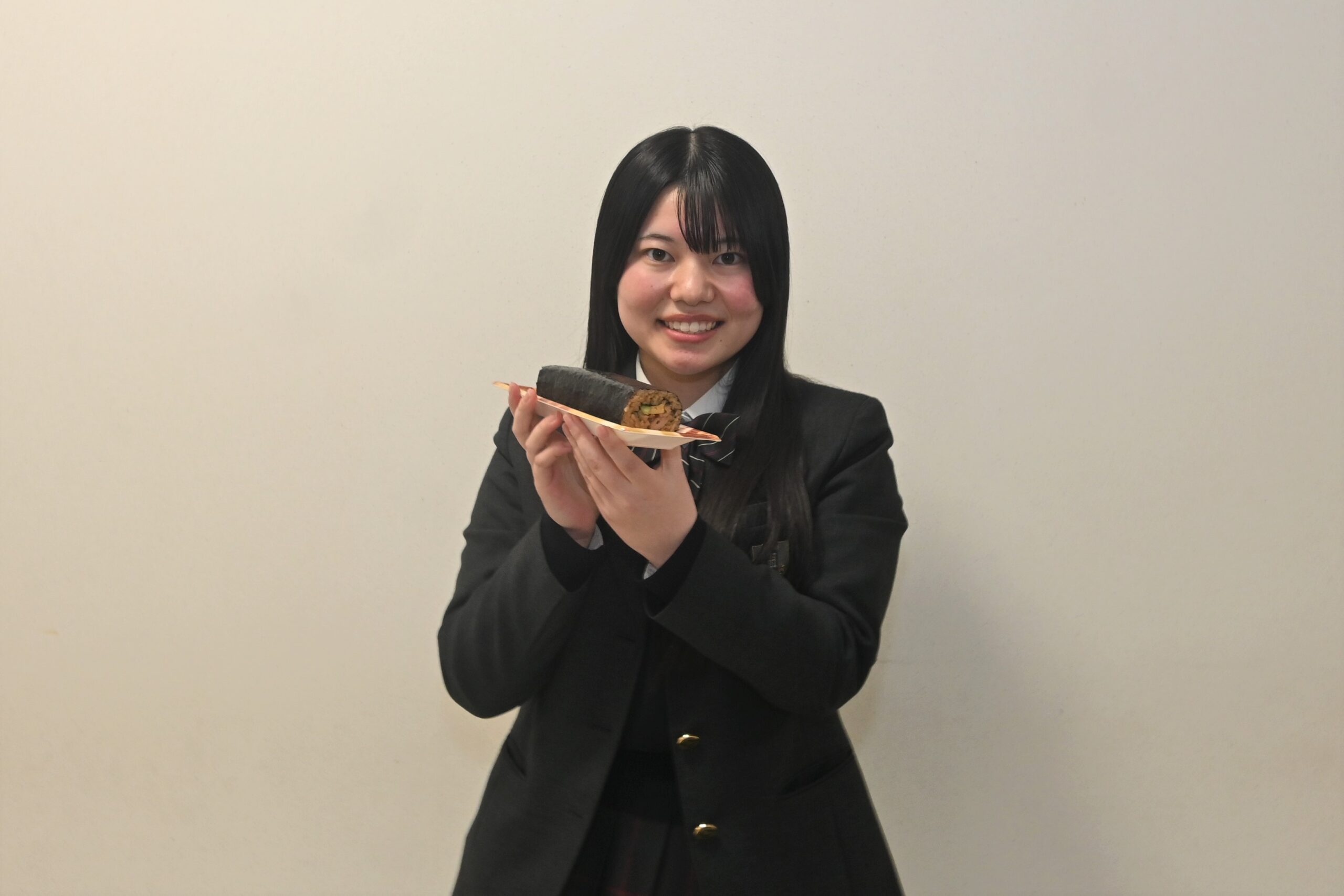 写真=「五平餅風恵方巻」を考案した豊田東高校の中村さん