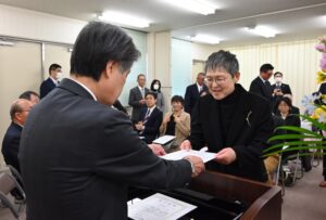 写真=太田市長から修了証書を受け取る修了生(右)