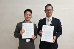 この日は豊田市社会福祉協議会職員が株式会社JAあいち豊田サービスを訪れ、同社やすらぎ課の林義之課長が覚書に調印しました。また、今回の協定に合わせた3つの葬儀プランを提案しました。林課長は「地域密着が強みのJAだが、JAだけでは手を差し伸べられない方もいる。社協と協力して一人でも多くの方の助けとなるよう取り組んでいきたい」と話しました。