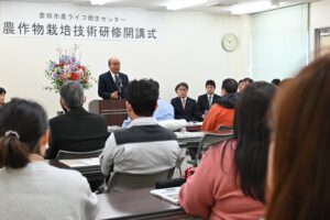 JAあいち豊田と豊田市が共同運営する豊田市農ライフ創生センターは3月4日、豊田市四郷町にある豊田市農ライフ創生センターで農作物栽培技術研修「担い手づくりコース」の開講式を開きました。今年の新規受講生は28人で、年齢層は30代から60代までと幅広く、女性の割合は昨年より多い約4割を占めます。