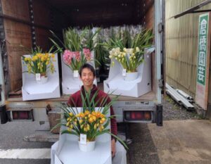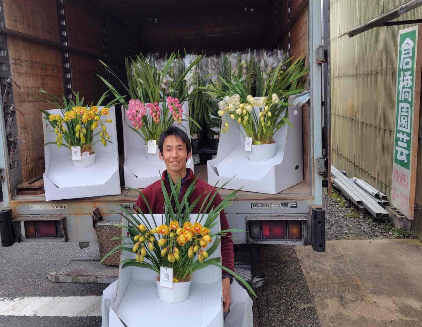 写真=シンビジウムを出荷する倉橋園芸の倉橋幸嗣さん