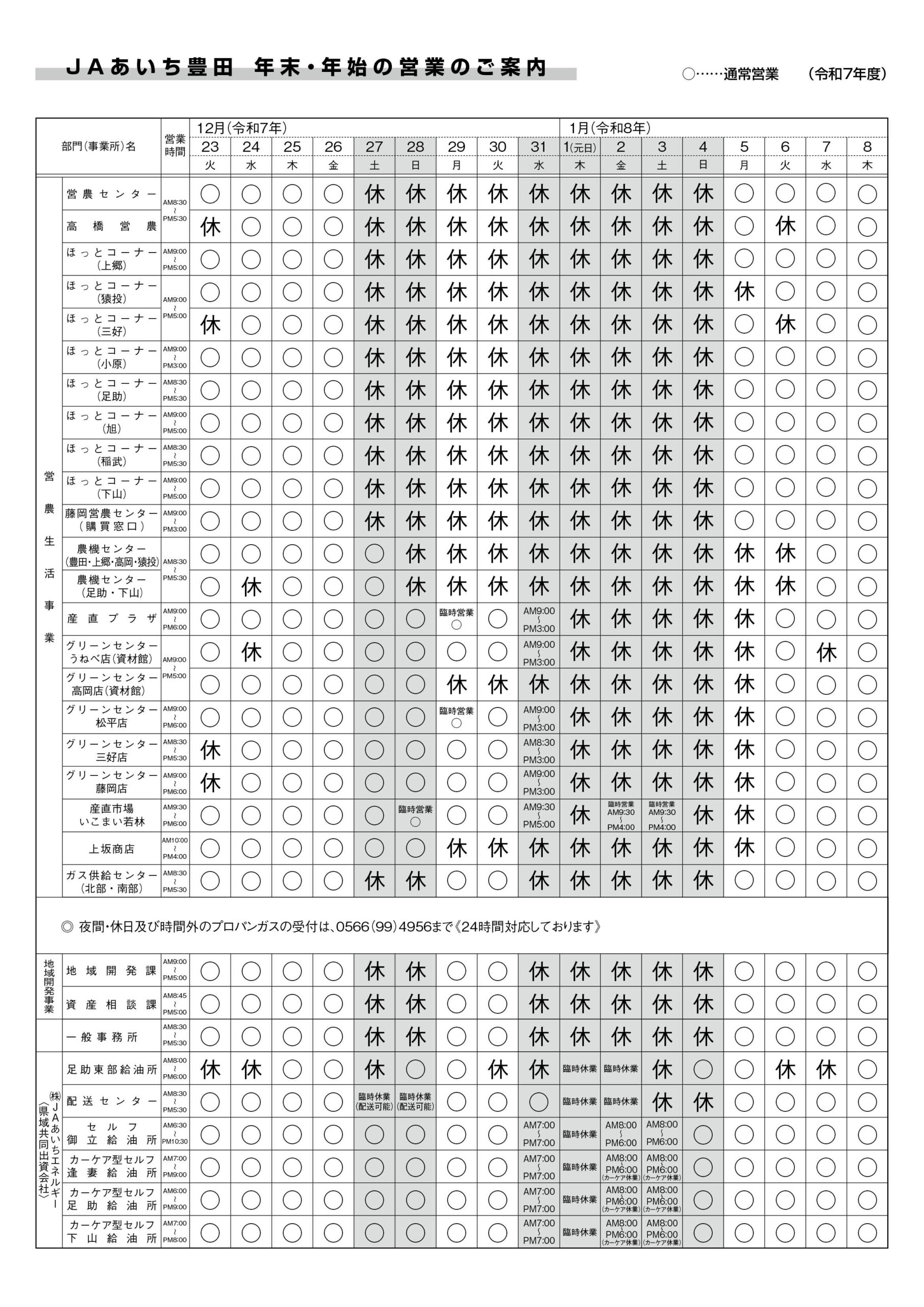 年末年始の営業のご案内