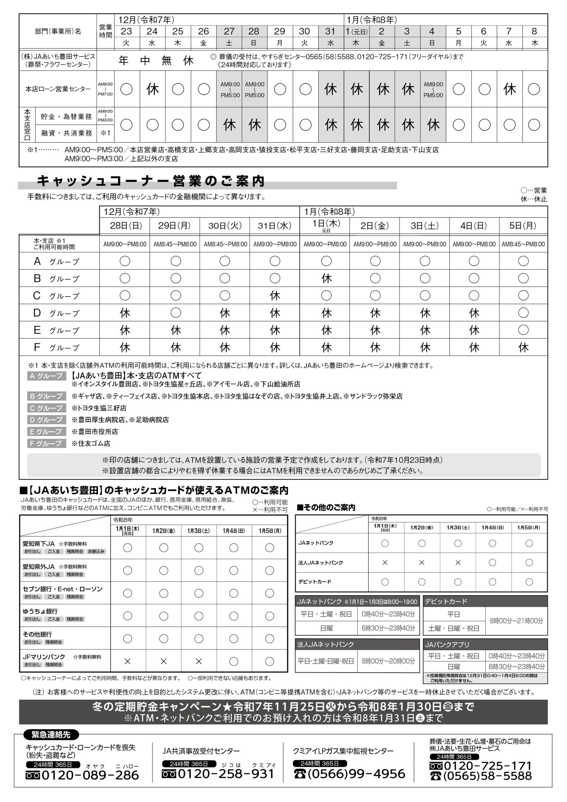 信用事業にかかる重要なお知らせ