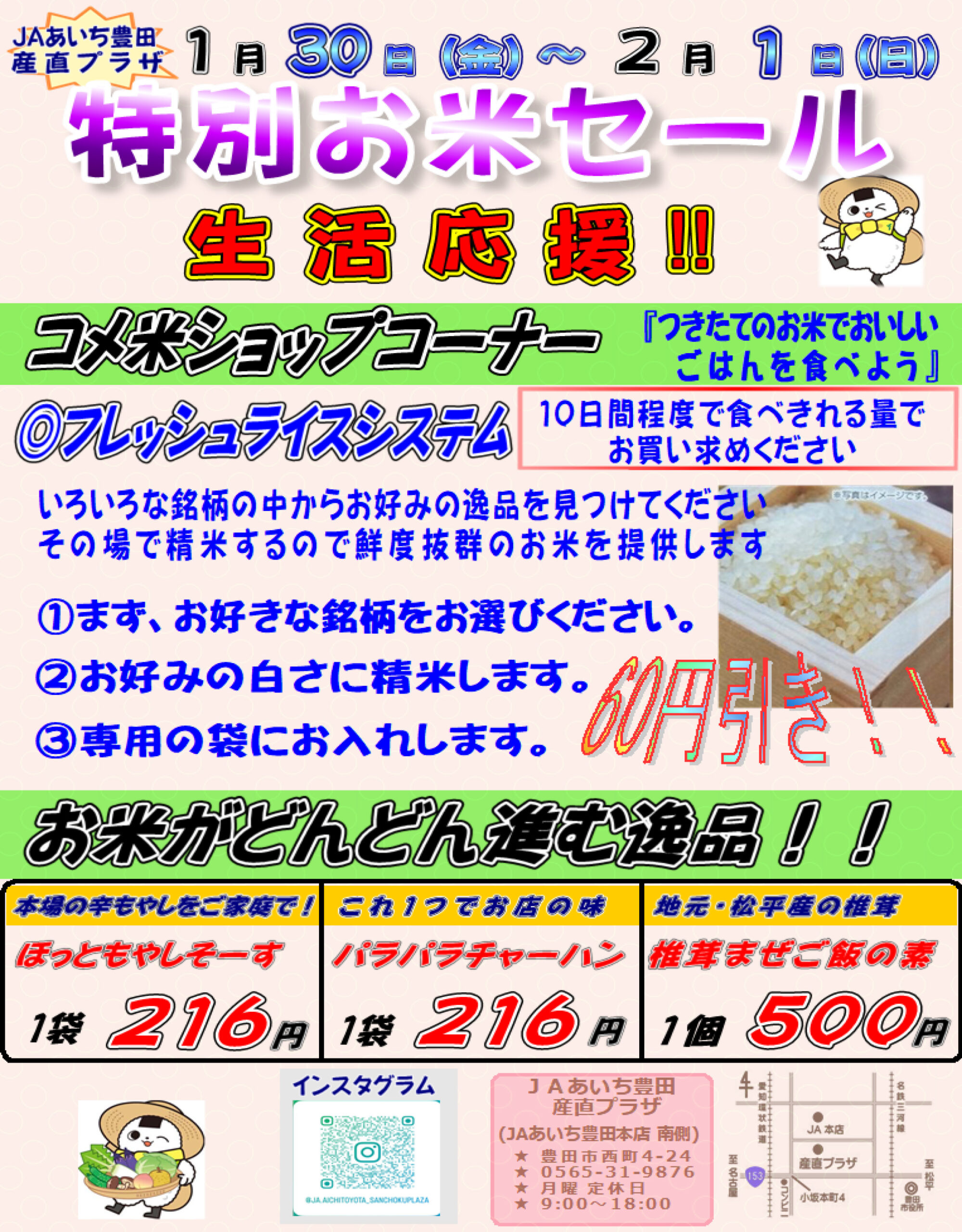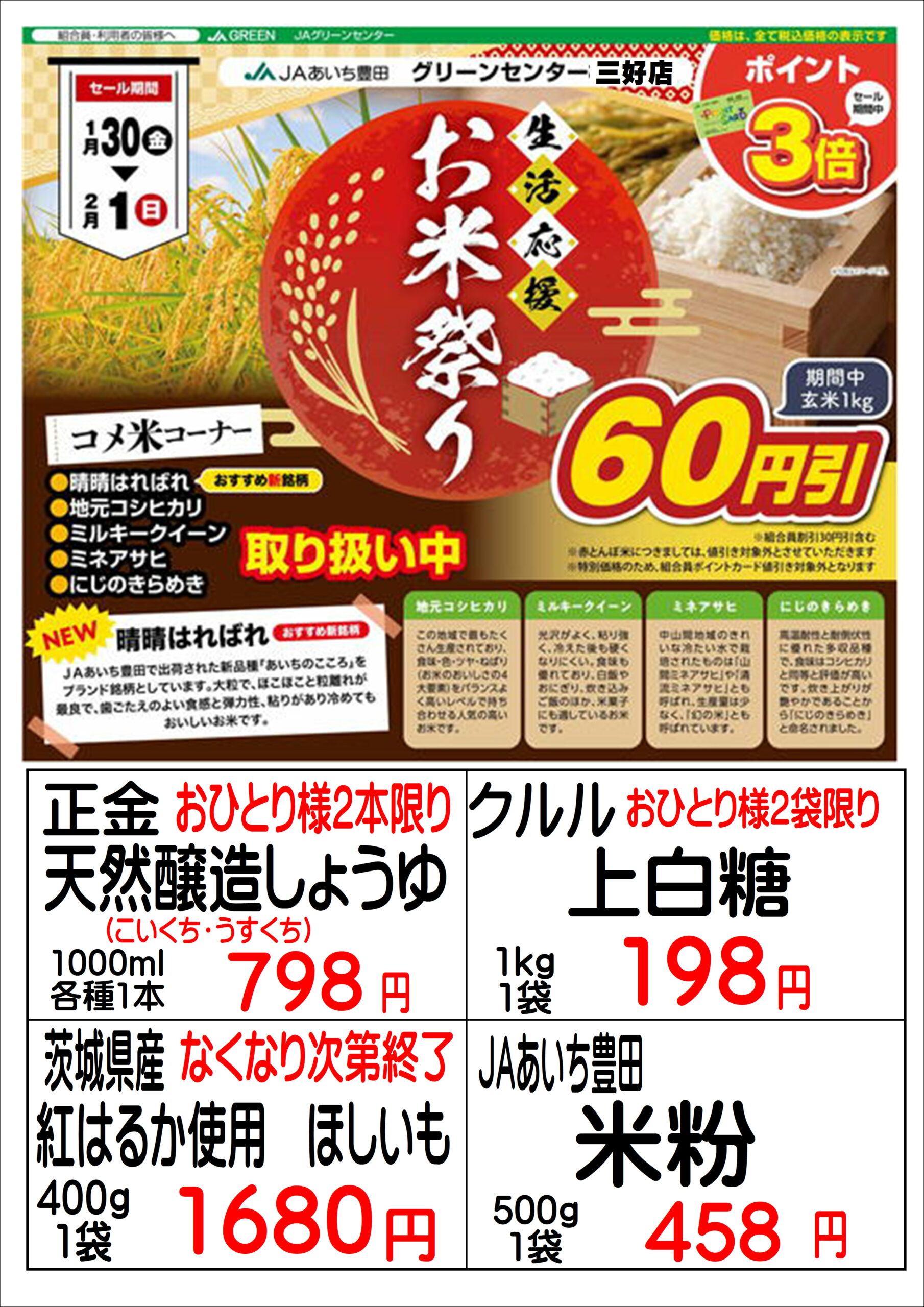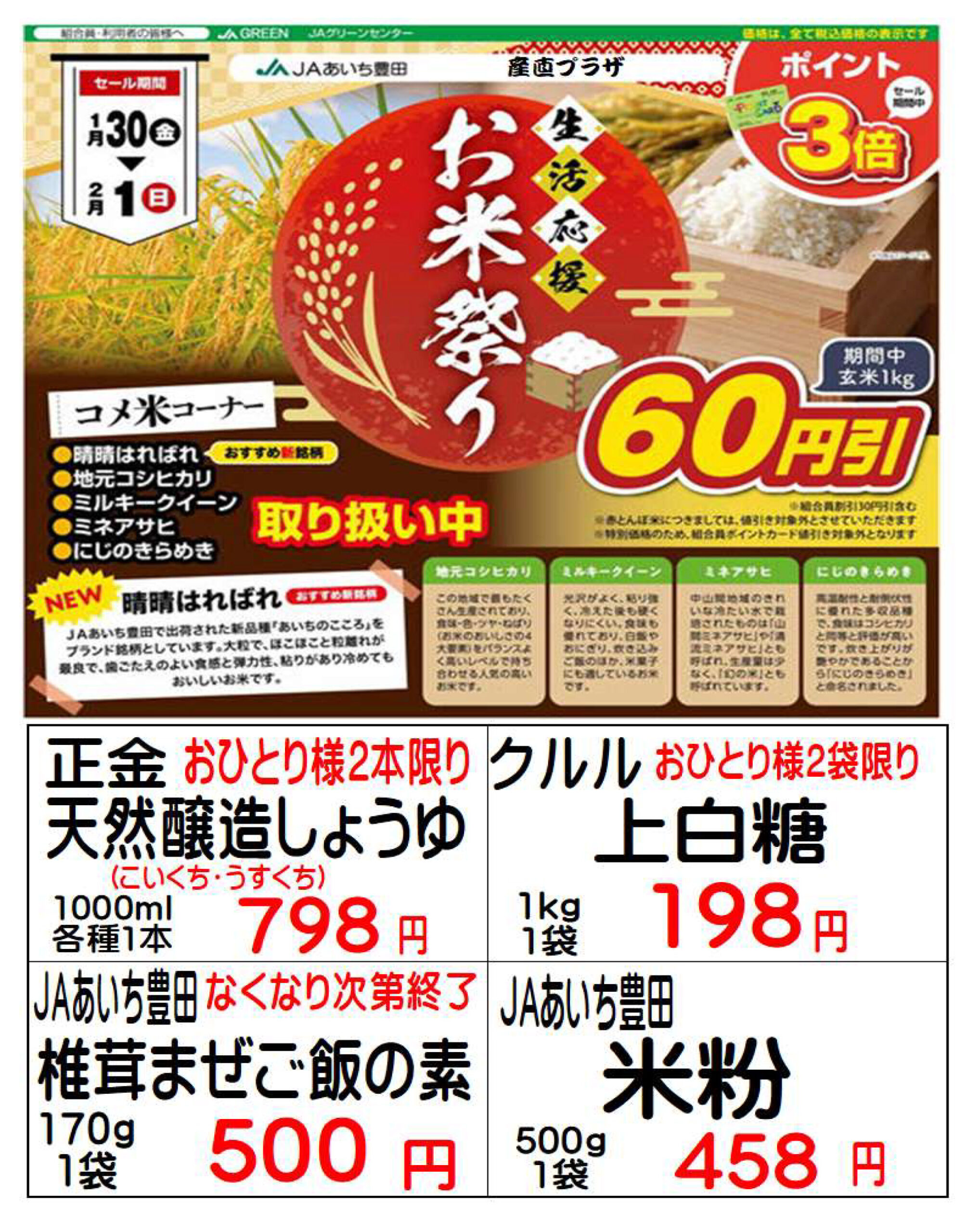 1月30日(金)から2月1日(日)の3日間、各店で「お米祭り」を開催します!