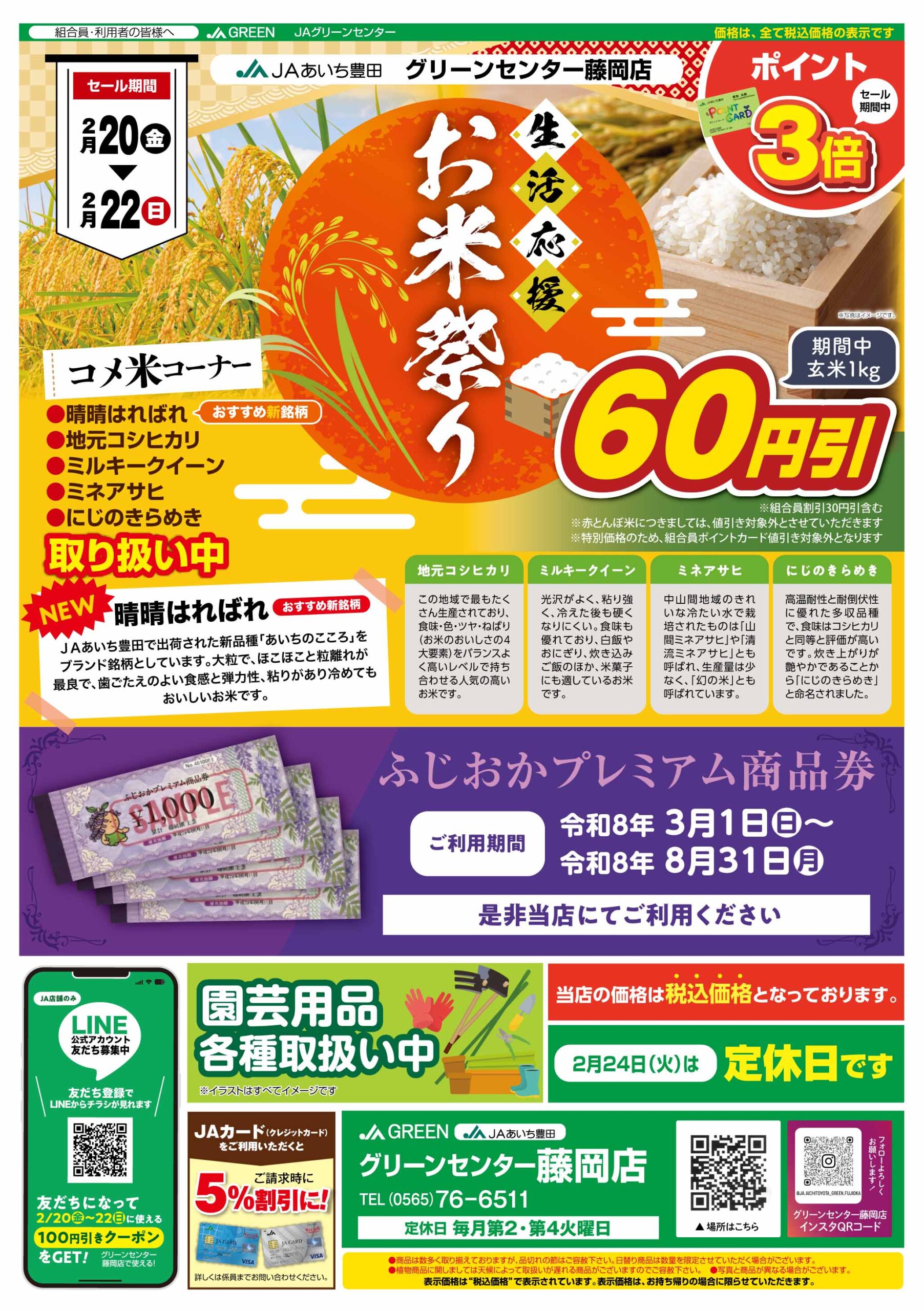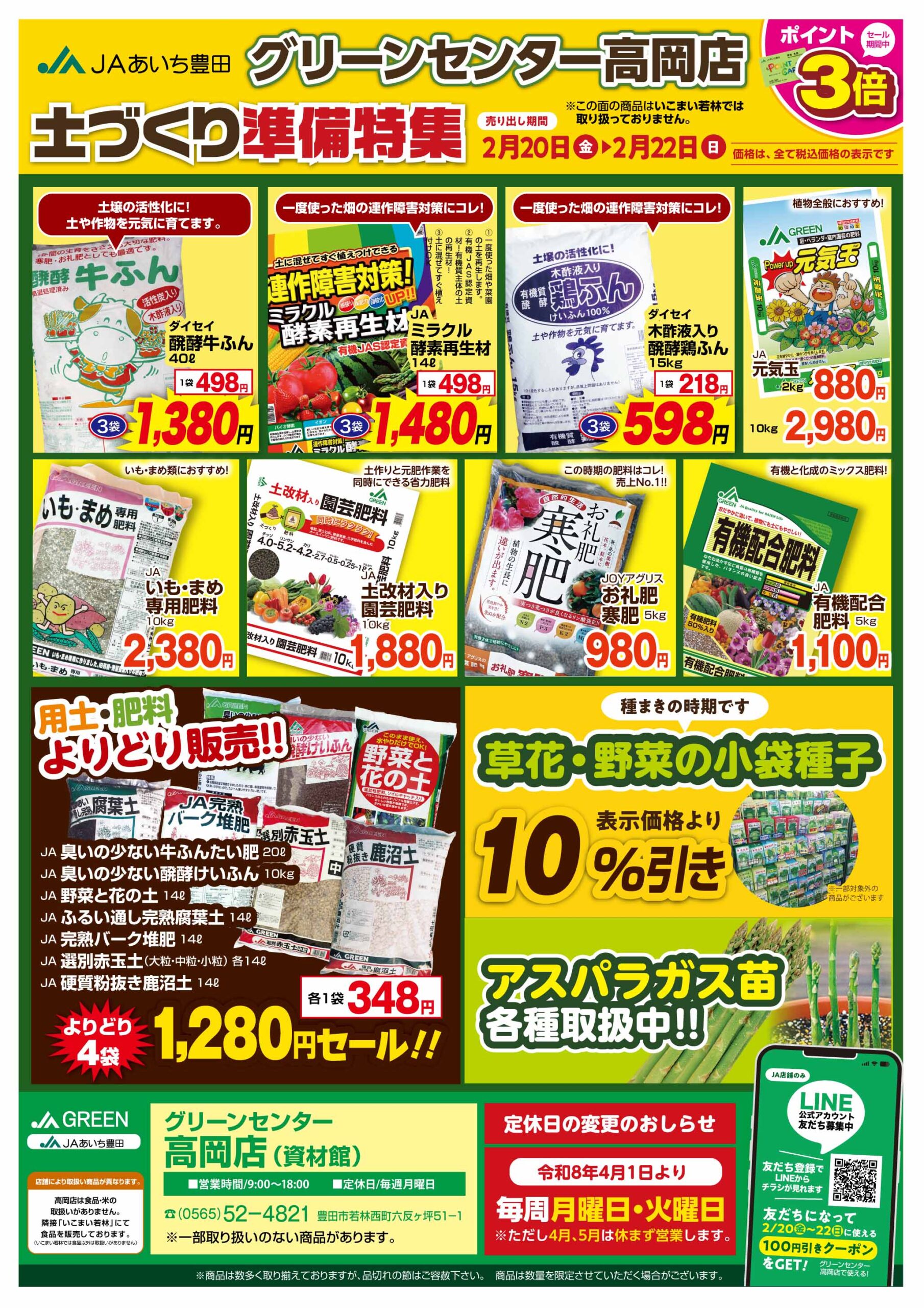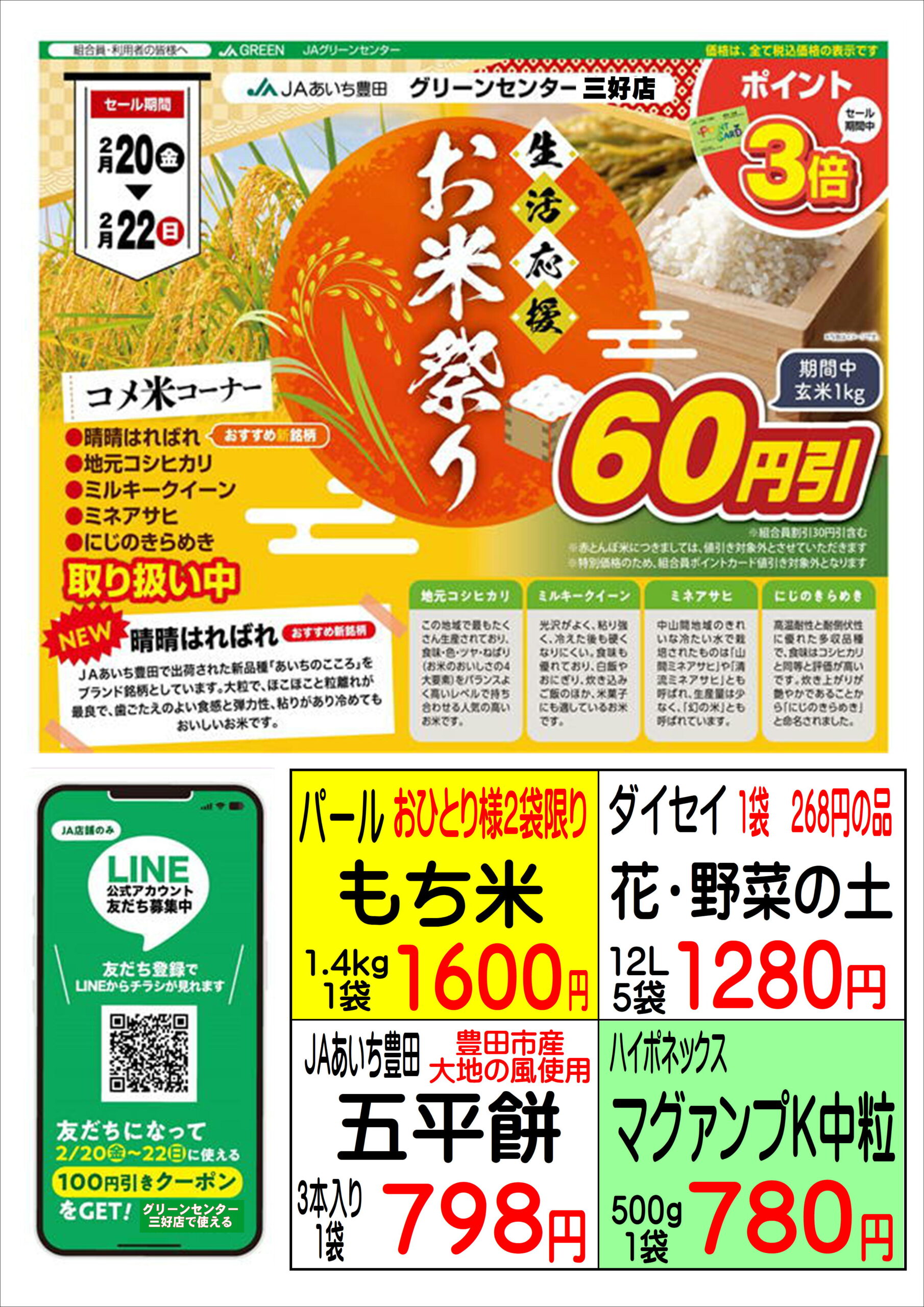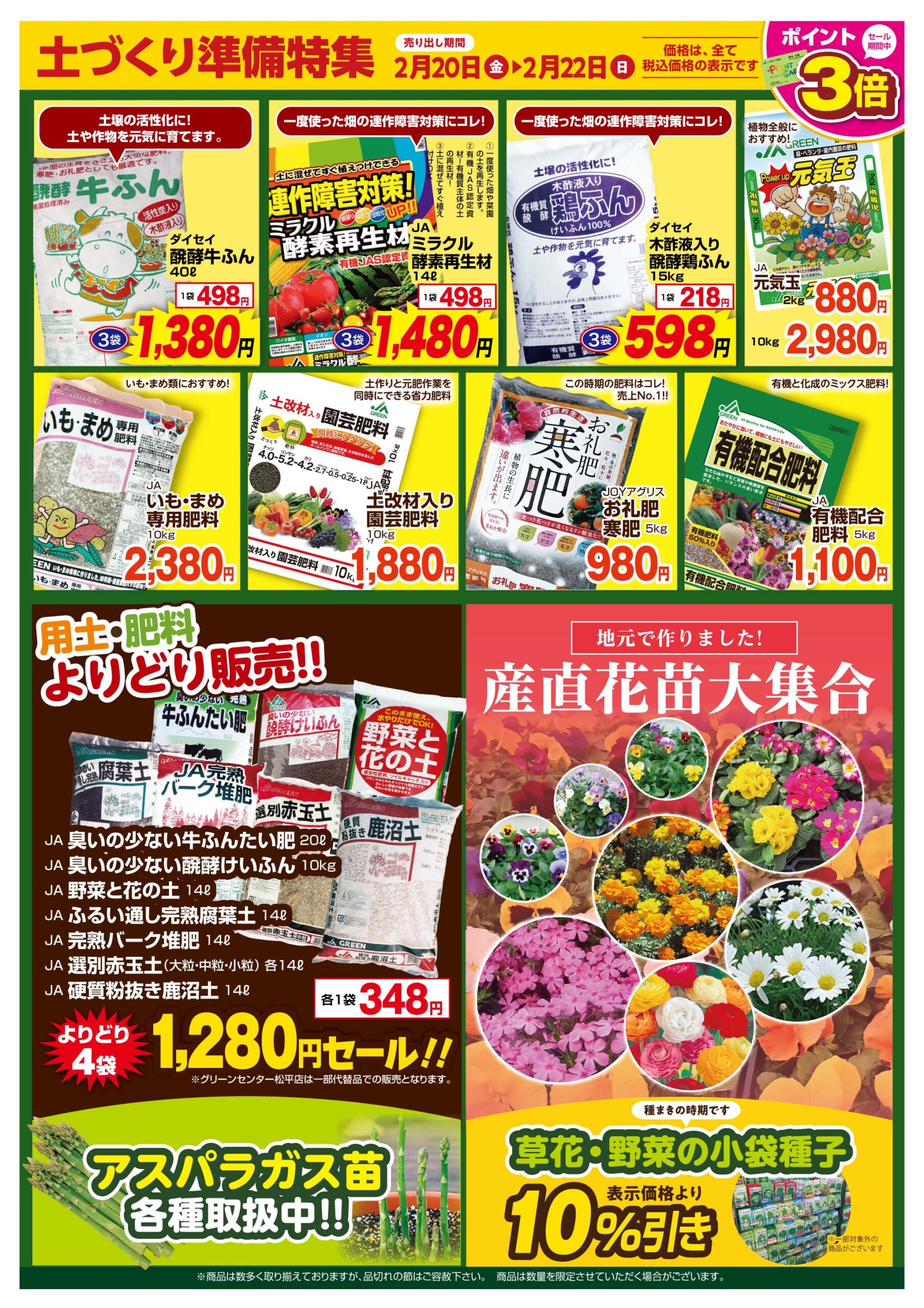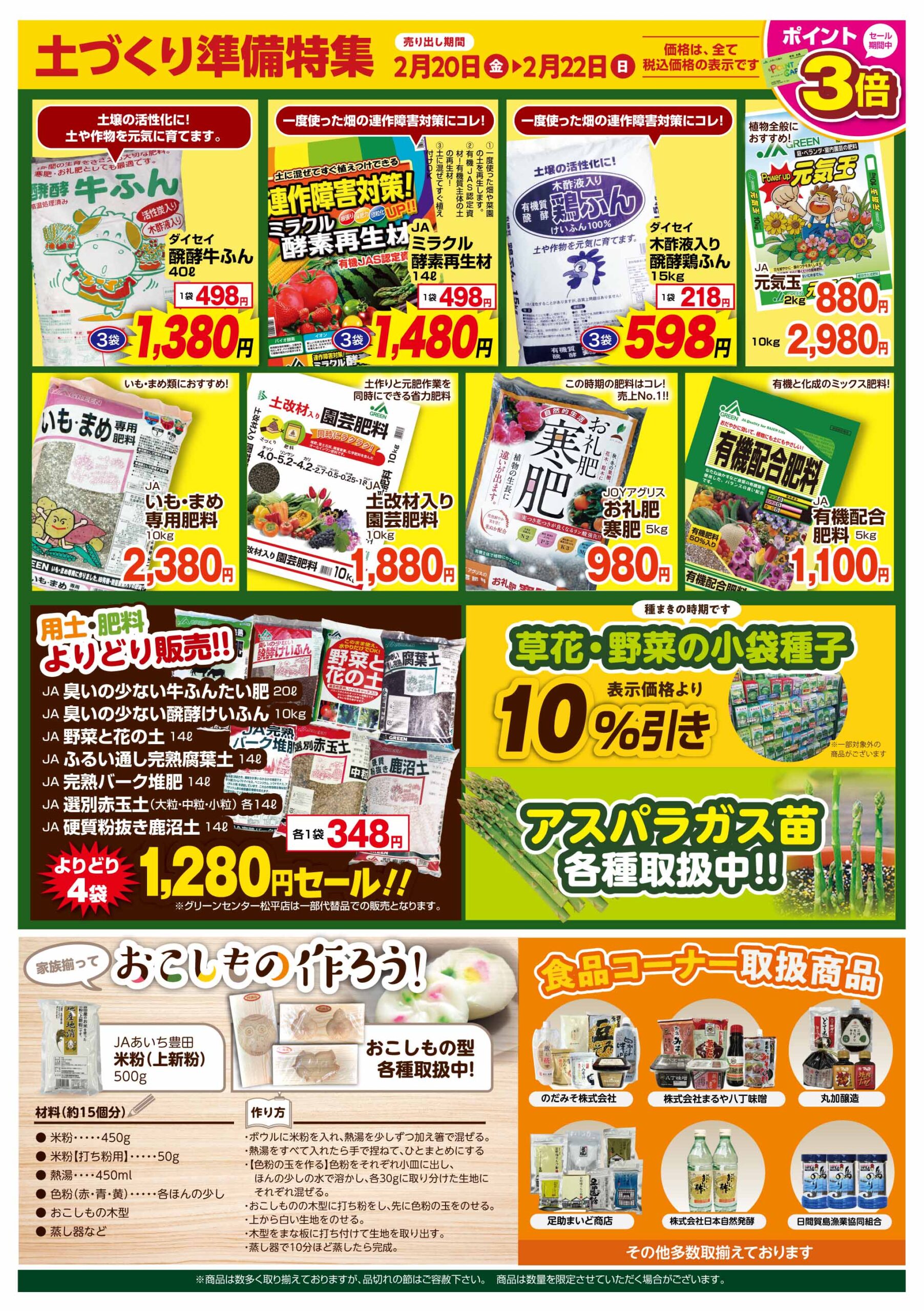 2月20日(金)から2月22日(日)の3日間、各店で「お米祭り」・「土づくり準備セール」を開催します!