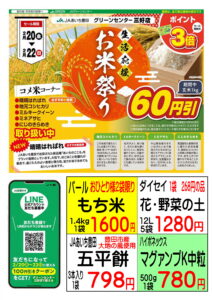期間中は玄米1キロにつき60円引となります。