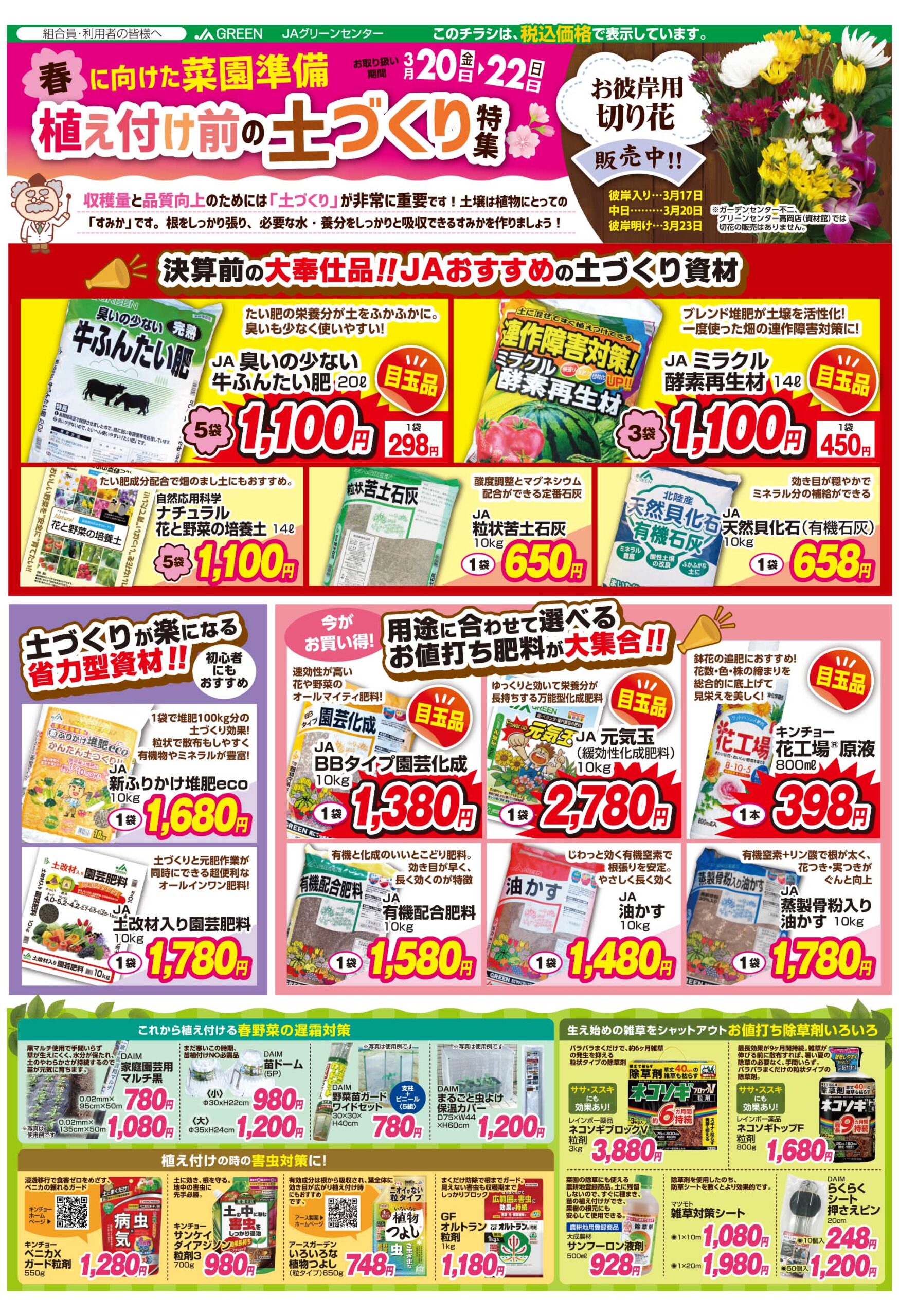 3月20日(金)から3月22日(日)の3日間、グリーンセンター各店で「植え付け前の土づくり」セールを開催します!