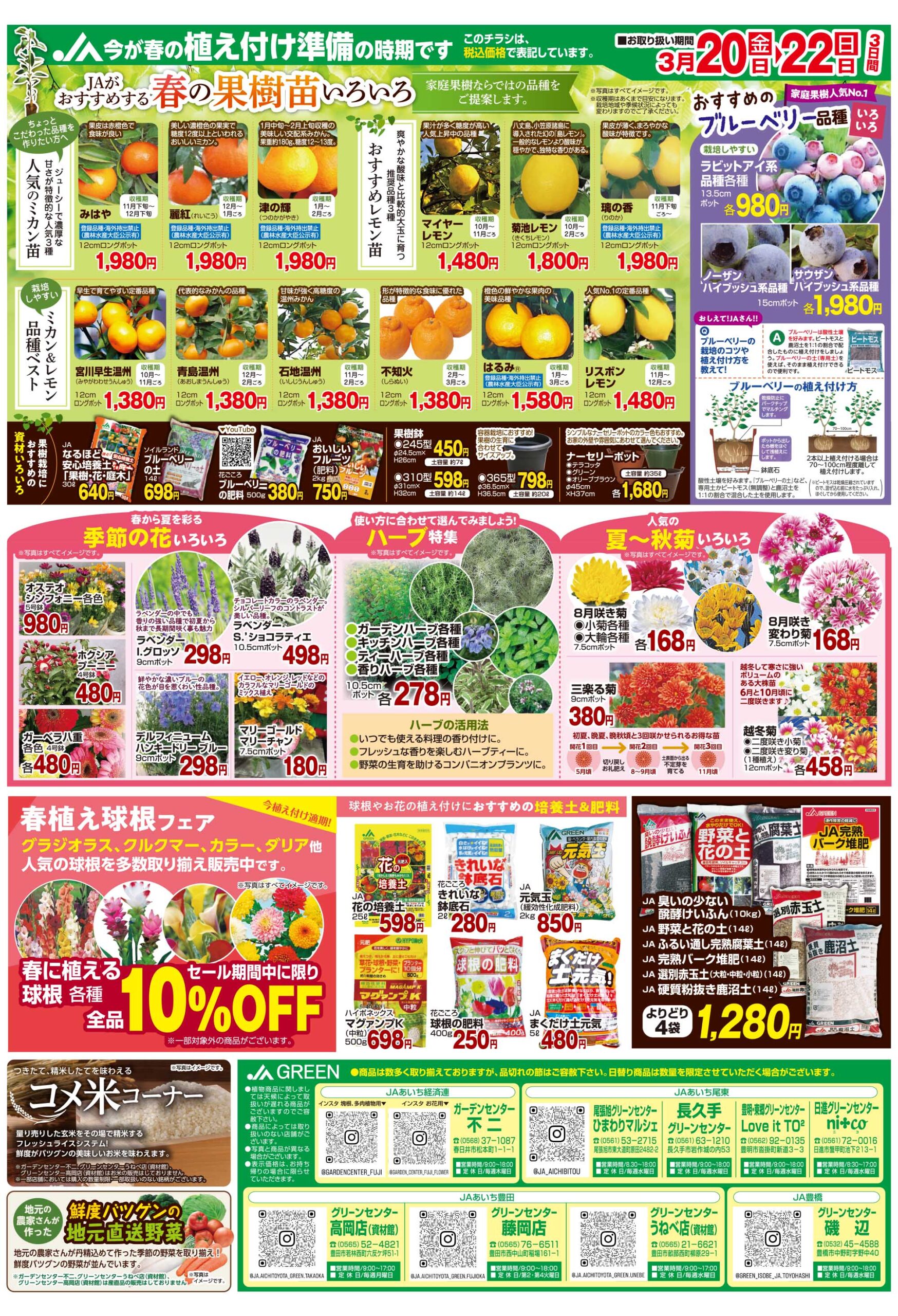 グリーンセンター高岡店(資材館)・藤岡店・うねべ店(資材館)